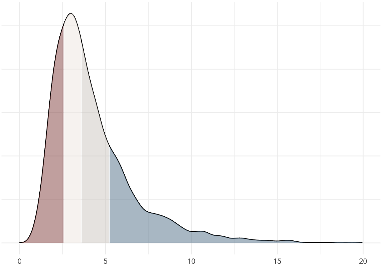 This plot shows that an average engineer merges 3.6 pull requests per week, and a throughput above 5.2 PRs merged per week is in the upper quartile of our industry benchmark.