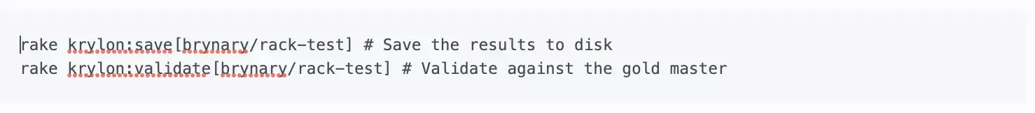 Then there is the matter of comparing the results of a test run against the known good version. Ruby has a lot of built-in functionality that makes this relatively easy, but it took a few tries to get a harness set up properly. We ended up with something like this:
